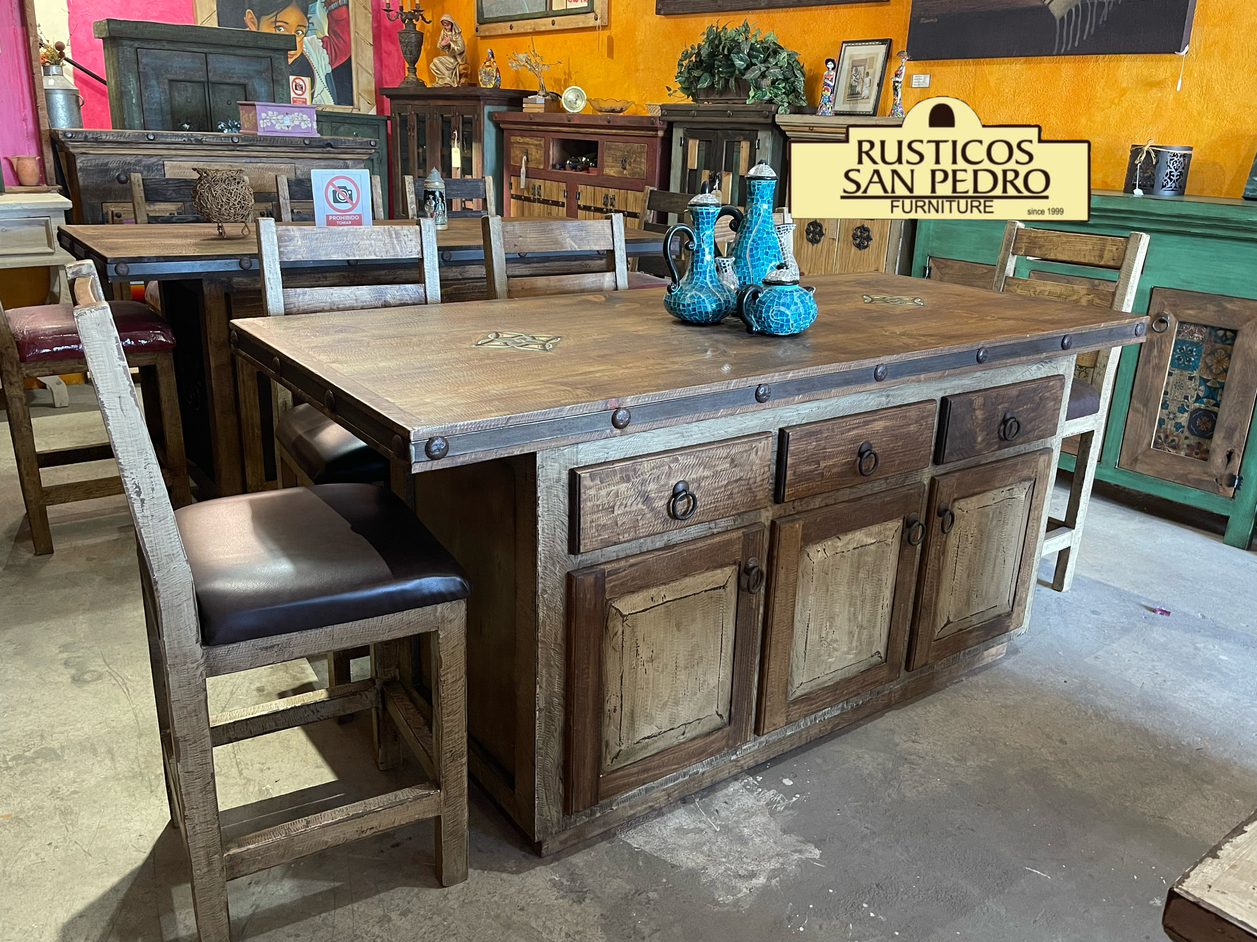 Materiales: Madera pino, Solera y clavos decorativos de metal.
